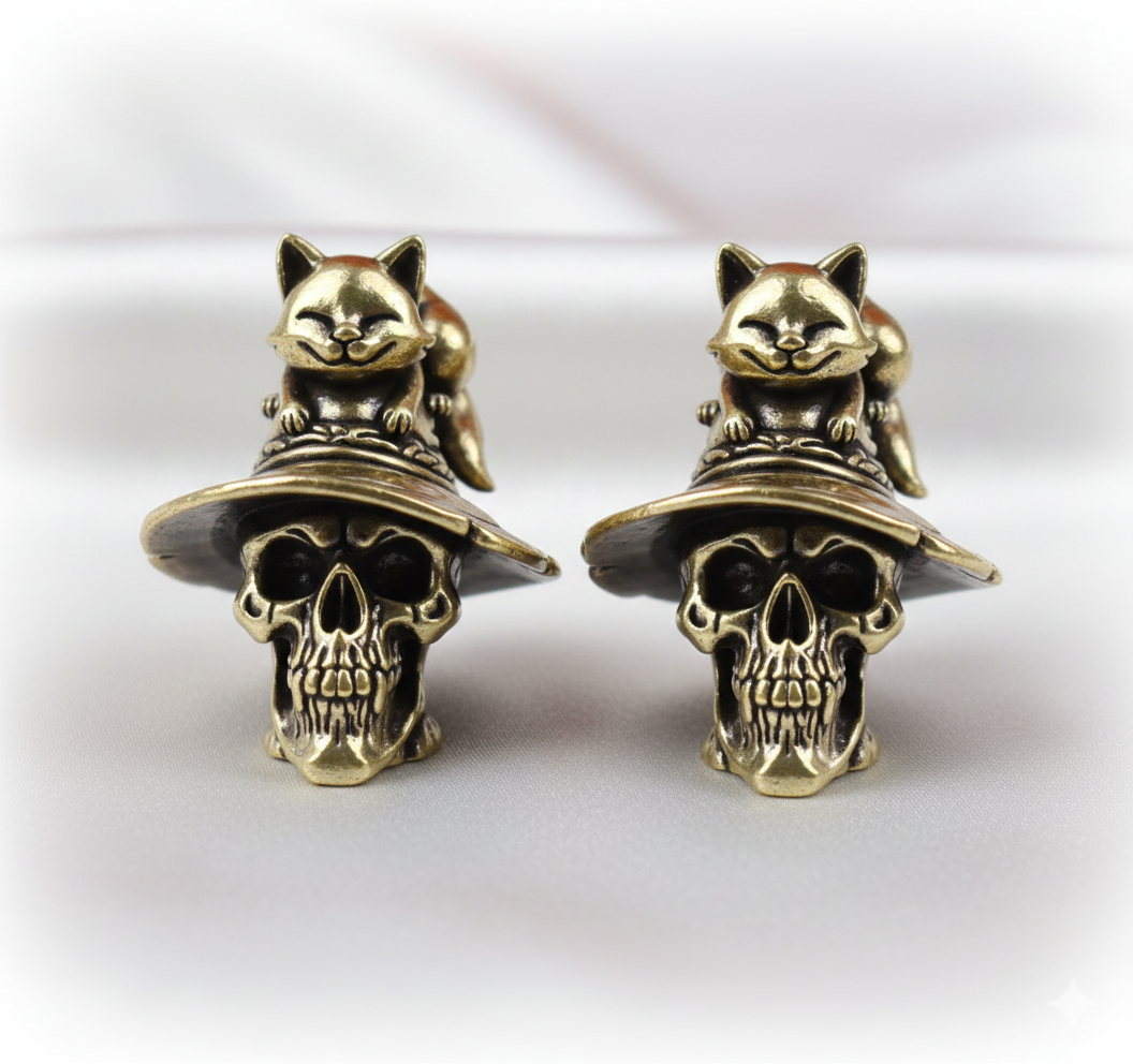 Add a touch of dark elegance to your space with this Mini Brass Cat Skull Statue, a striking piece inspired by gothic and dark fantasy aesthetics. Crafted with fine detail, this small yet powerful figurine makes a perfect accent for an altar, shelf, desk, or display cabinet.