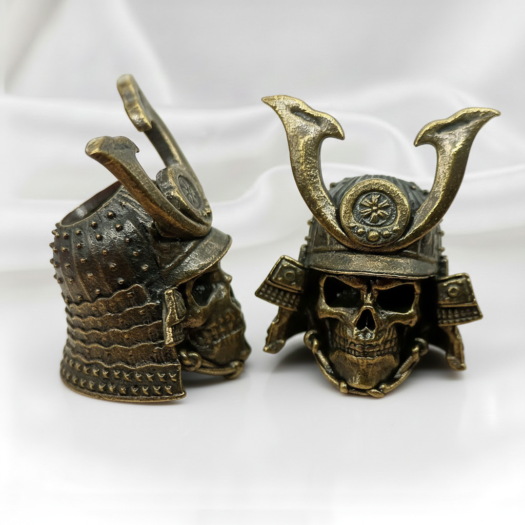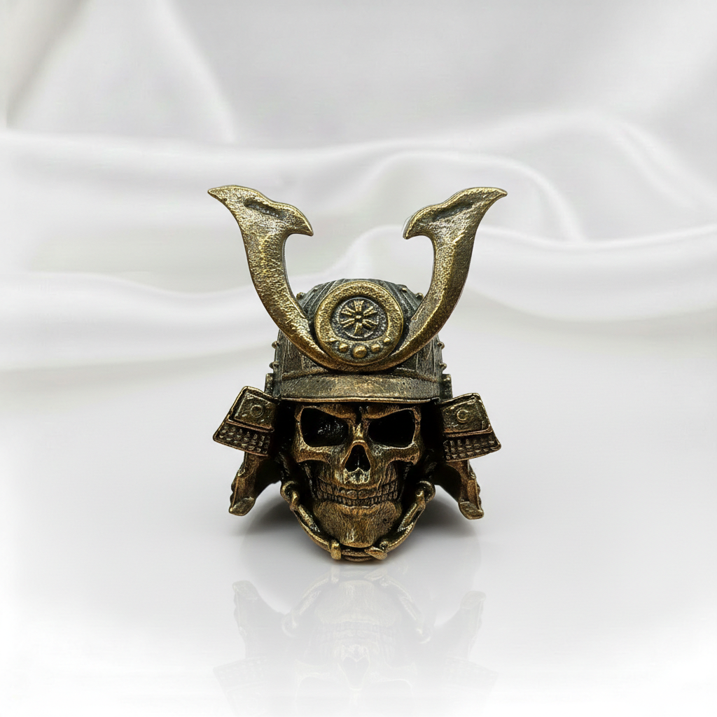 Upgrade your everyday carry with this brass skeleton helmet warrior knife bead, designed for outdoor lovers, EDC enthusiasts, and DIY creators. Crafted from solid brass, this durable and eye-catching accessory adds a bold, warrior-inspired style to knives, paracord lanyards, backpacks, keychains, bracelets, or necklaces.