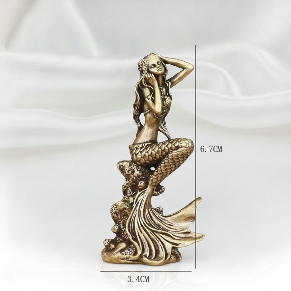 1 PC Brass Mermaid Statue Figurine –1 PC Beautiful Woman Sculpture for Home & Office Décor, Creative Handicraft Gift (6.7cm x 3.4cm)