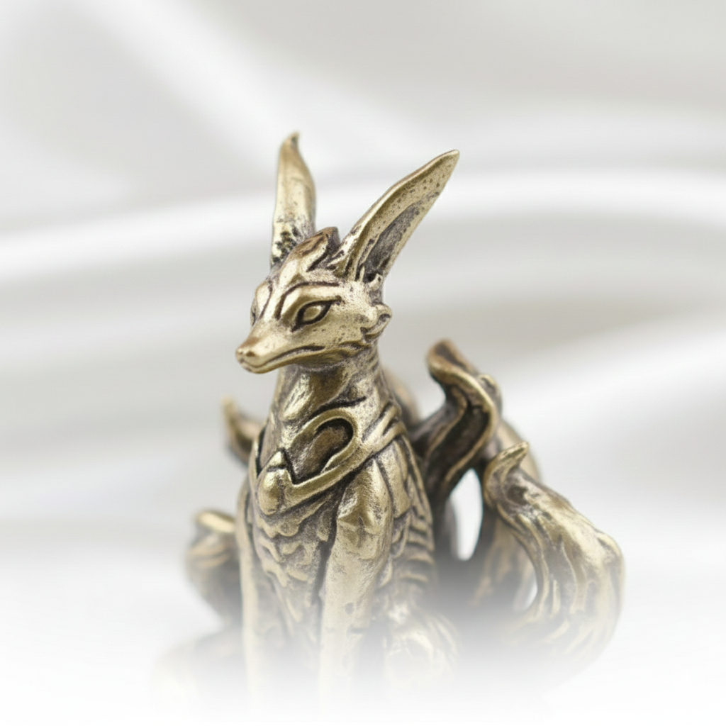 Brass Nine-Tailed Fox Statue – Mystical Fox Spirit Figurine, Zen Desk Decor & Mythology Collectible Gift