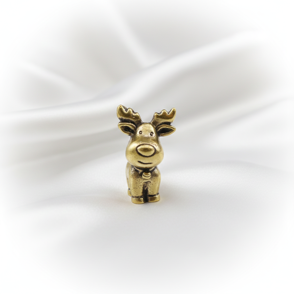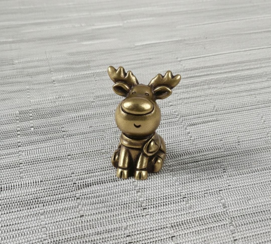 1 pc Handcrafted Brass Elk Figurine – Copper Metal Ornament with Antler Detail | Elegant Xmas & Home Desk Decoration