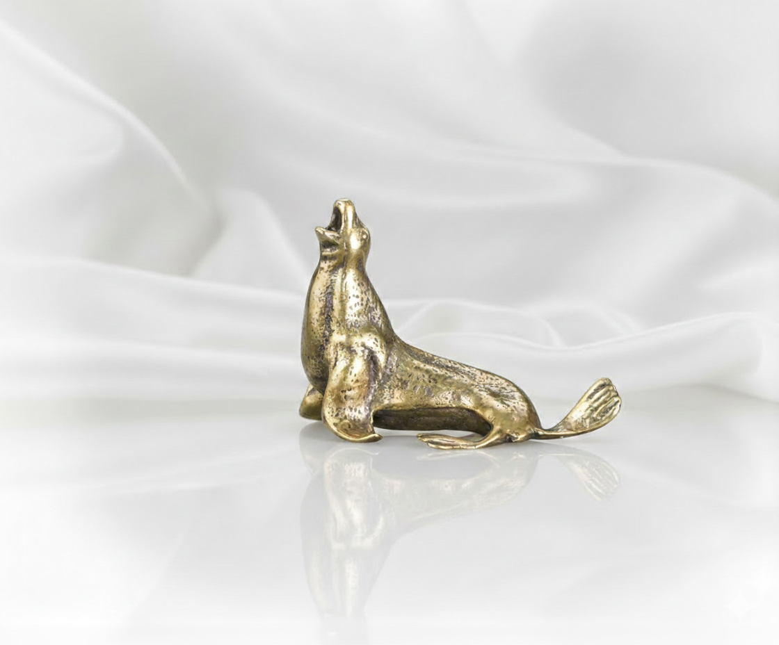 Perfect for home decoration, office desks, tea ceremonies, or as a unique gift, this brass sea lion figurine is a small piece with big character.